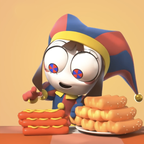 "Digital Circus 'Pomni' Eats" is an exciting simulation game. You will discover a new amazing world of an unusual circus in which you will have to play for the Pomni and eat hot dog sausages.