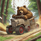 🐻A bear on a magic log with wheels, together with squirrels, is in a hurry to restore order in the forest.