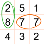 - The numbers are adjacent (horizontally, vertically, or diagonally) or at the ends of different rows.