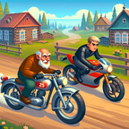 The main feature of this game is "split screen". You can play with friends on one screen. This game has two completely different locations - a city and a village. Everywhere there are their own features of motorcycle control. For the dad and the boy, only the motorcycles that match them are available.