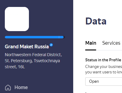 The owner of the business will also see the icon in their Yandex Business account to the right of the business's name.
