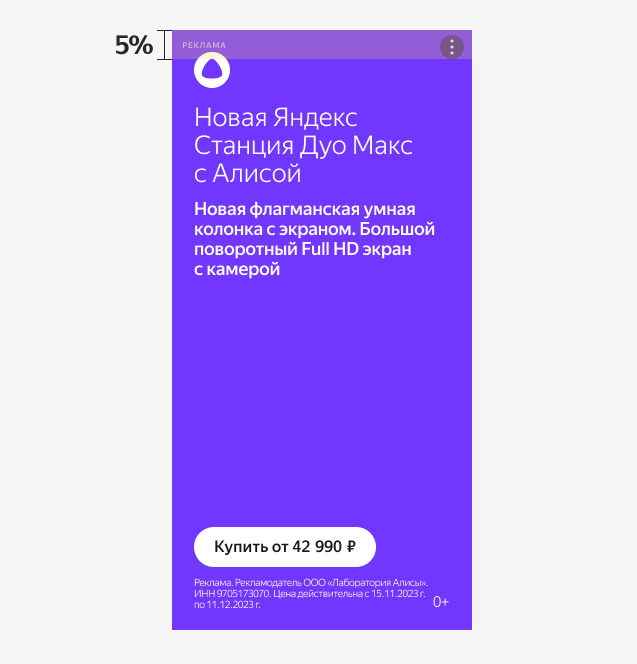 When building your creatives, keep in mind that the interface elements may overlap the top (safe) area. Therefore, don't place any text, logo, or other elements there.