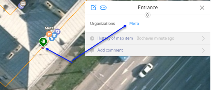 Using the interface for editing entrances in the organization card (see 3.6.3. Entrances to organizations outside Indoor maps).
