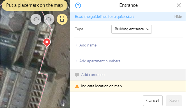 Techniques for drawing and editing entrances to buildings are similar to the techniques for drawing and editing all places on the YME. See: