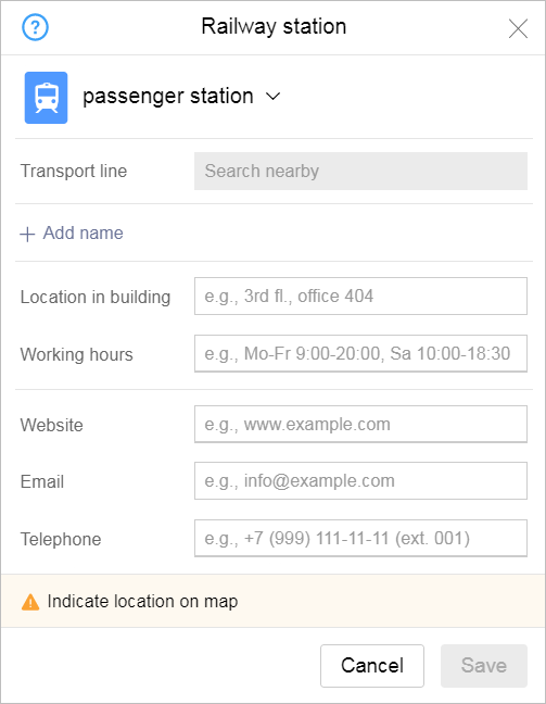 When entering address information for train stations (including the website, email address, and phone number), follow these rules: 3.12.2.2.4.1. Website