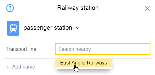 The attribute panel for a railway station looks like this: