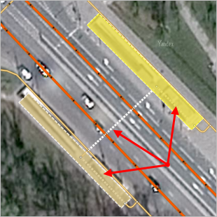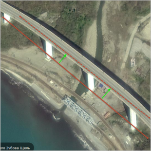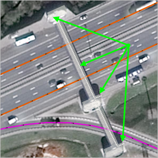 When drawing bridges and above-ground pedestrian crossings, pay attention to the possible displacement in the satellite image of the bridge surface or passage crossing from its position on the map that can be attributed to its elevation above the surface (see Section 2.3.1.4. Bridges).