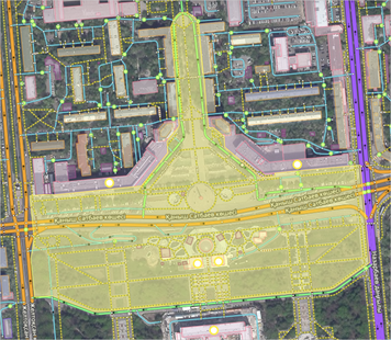 - When drawing polygons of underground and aboveground pedestrian crosswalks, include all parts of the crosswalk: the descent or ascent and the underground or aboveground parts: