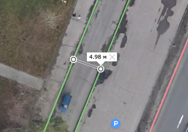 When drawing lines of parking spots, you must make sure that their shape corresponds to that of the road network on the map (since the satellite image may be outdated). If you need to align parking boundaries with the boundaries of a bridge or tunnel, determine the boundaries of that structure in accordance with section 3.3.2.6.1.
