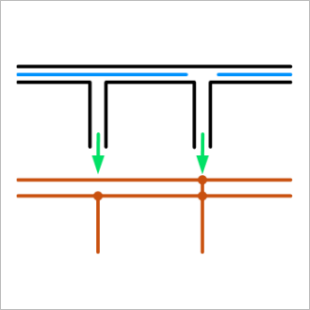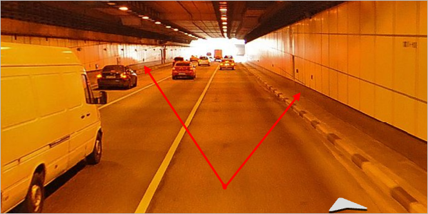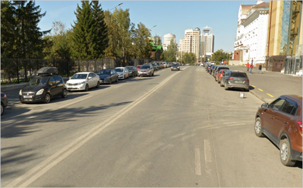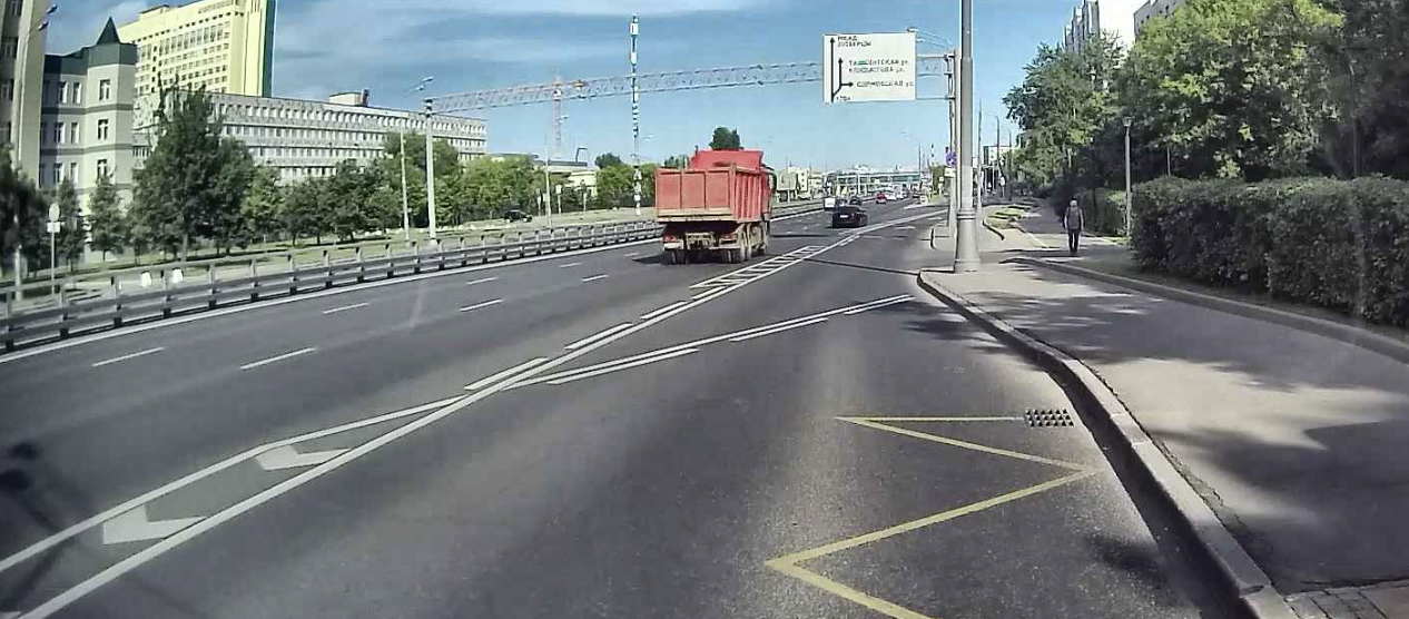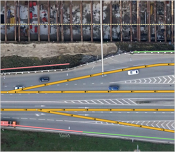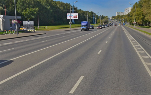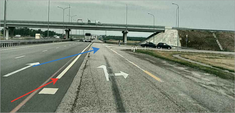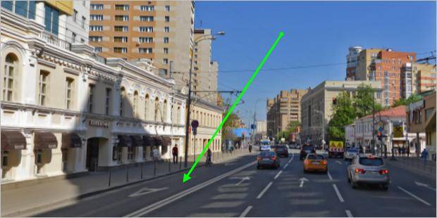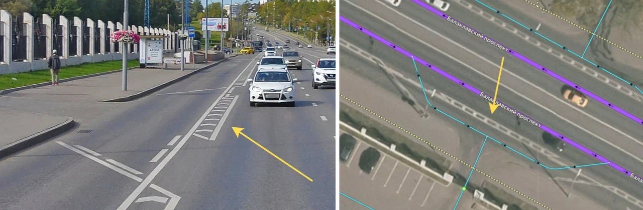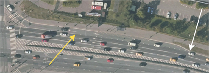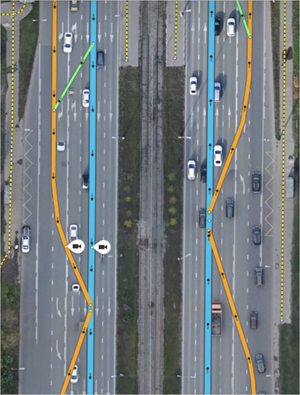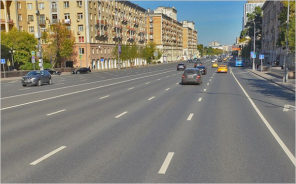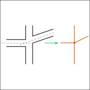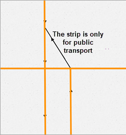 When drawing two-lane and one-way roads, draw road lines along the geometric center of the lanes intended for traffic, including tram tracks where cars are allowed to travel (ignore taxi and public transport lanes). Roads with an even number of lanes to be considered while drawing should be drawn according to the road markings that approximately coincide with the geometric center of the lanes.