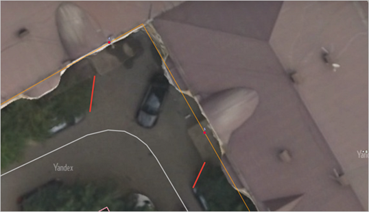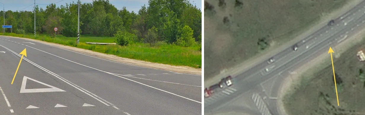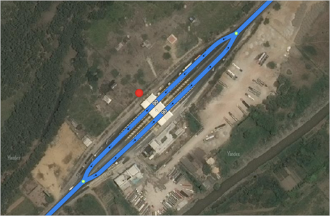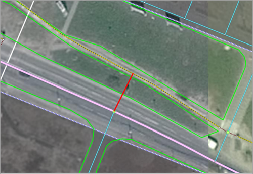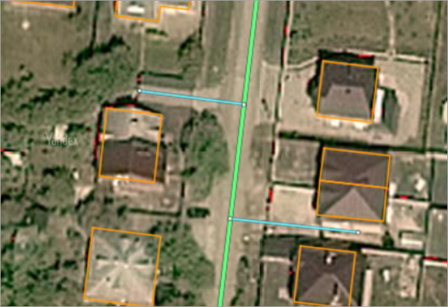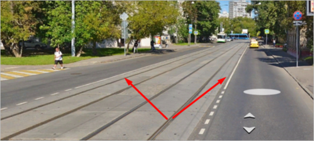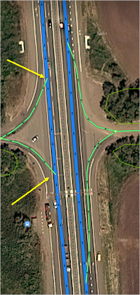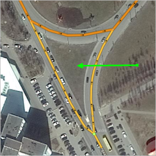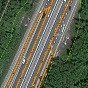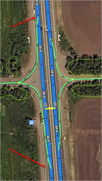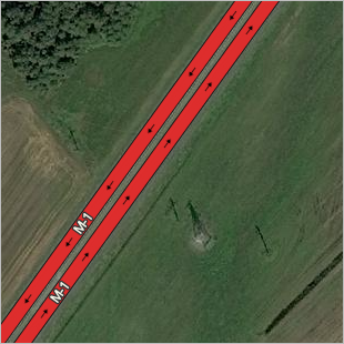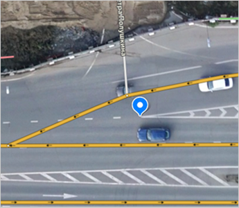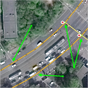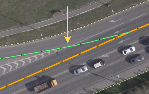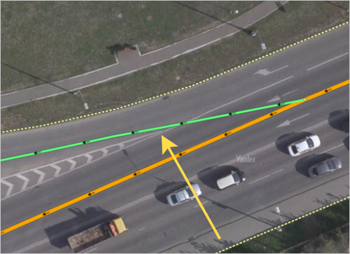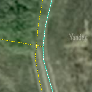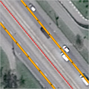If the satellite image is offset relative to tracks, then the staff must adjust the roads based on track information (for example, when there is a discrepancy between the track line and the central line of the roadway, and tracks aren't located within the roadbed in the image due to the terrain).