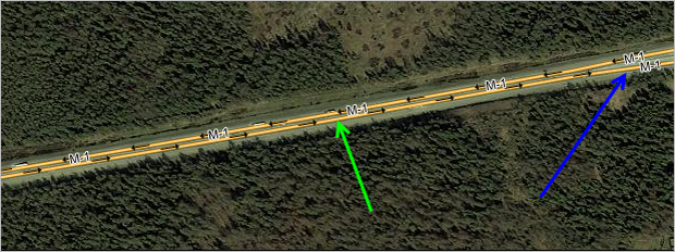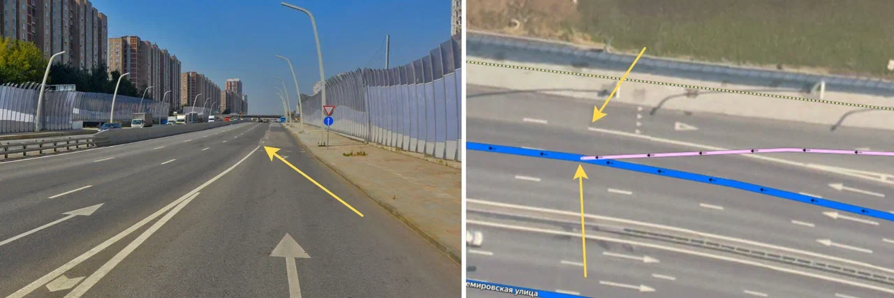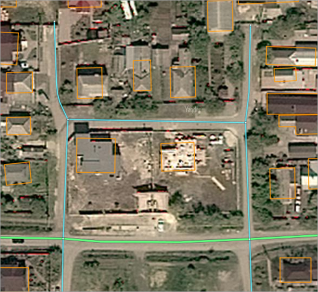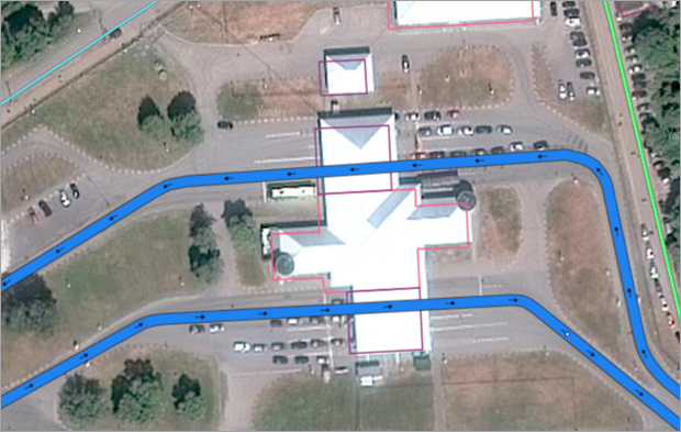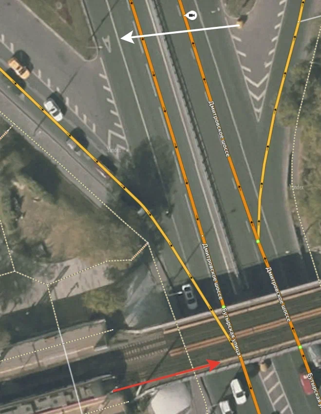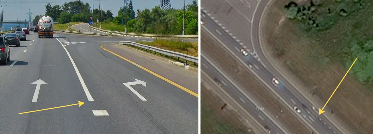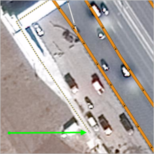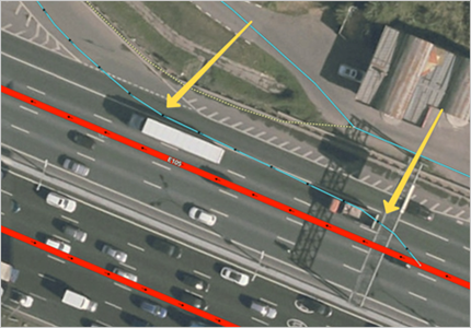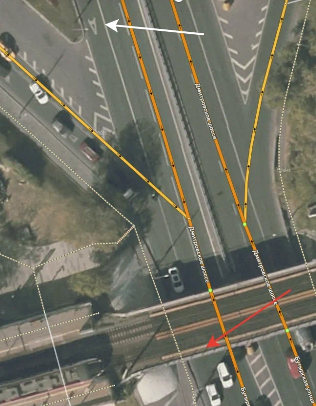 If the satellite image is offset relative to tracks, then the staff must adjust the roads based on track information (for example, when there is a discrepancy between the track line and the central line of the roadway, and tracks aren't located within the roadbed in the image due to the terrain).