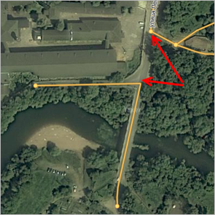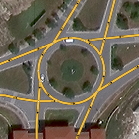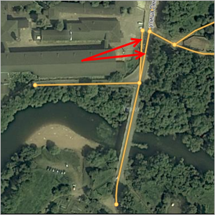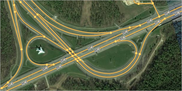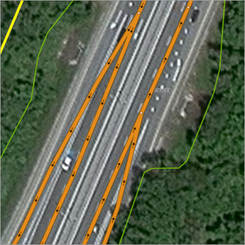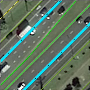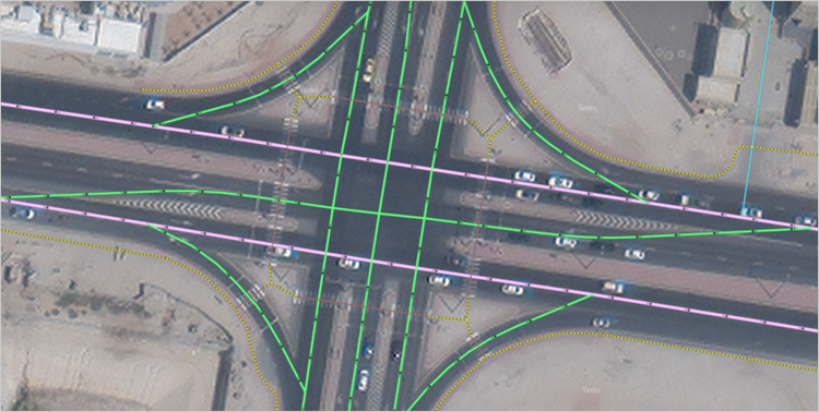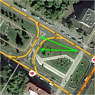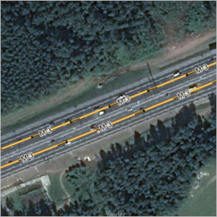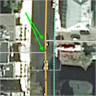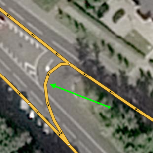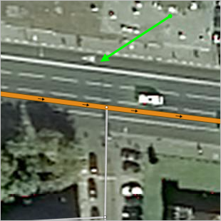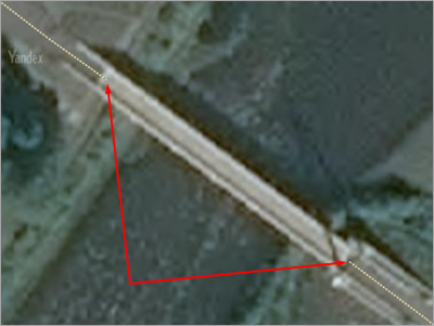 When you draw road sections that go over bridges, pay attention to the displacement of the bridge on the satellite image (for more information, see Section 2.3.1.4. Bridges).