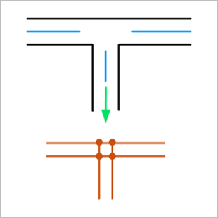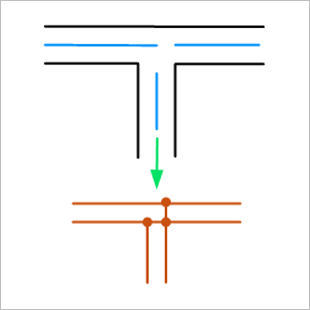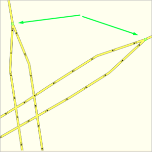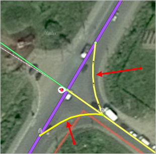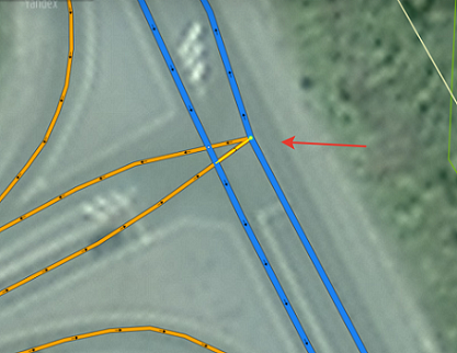 When you draw bends in roads or intersections, the end points of road sections that form crossings should meet and form an intersection. There should not be any