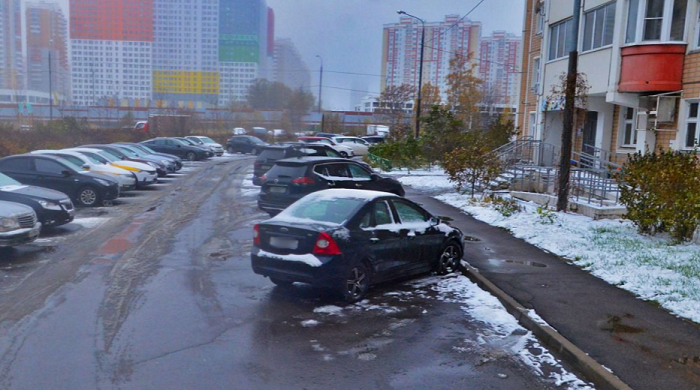 The one-way entrance and exit from the underground parking are located in close proximity to each other (in this case, the entrance and exit sections should be connected in an arc within the structure without leading them deep into the building):