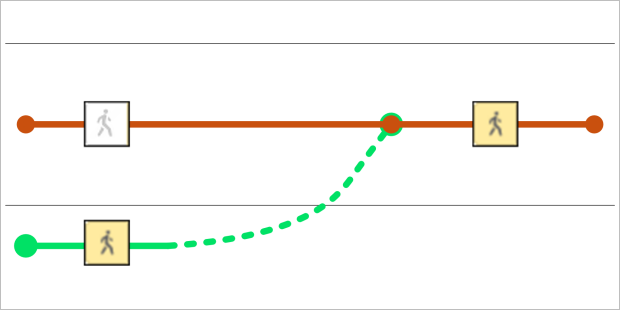 Lines for aboveground and underground pedestrian crosswalks lead to the point where the ascent/descent begins (if the ascent/descent includes section of level ground, simplify your drawing so that there are no more than two sections):