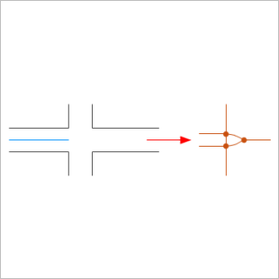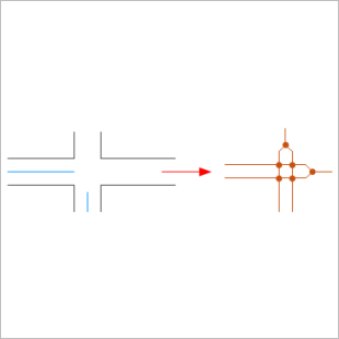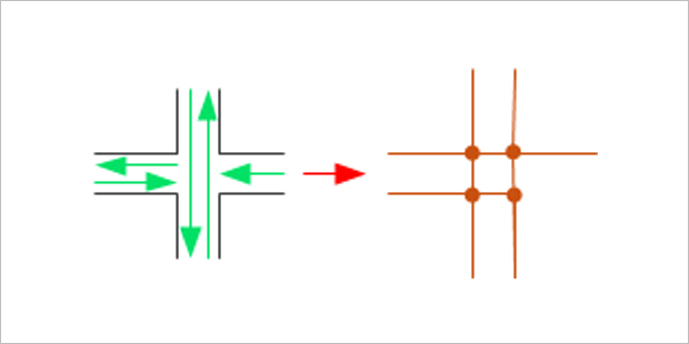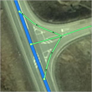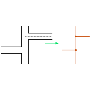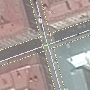 When drawing road elements, the points where the road elements intersect (the start or end point of each element) form independent objects of type Intersection