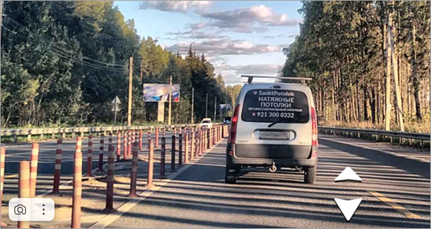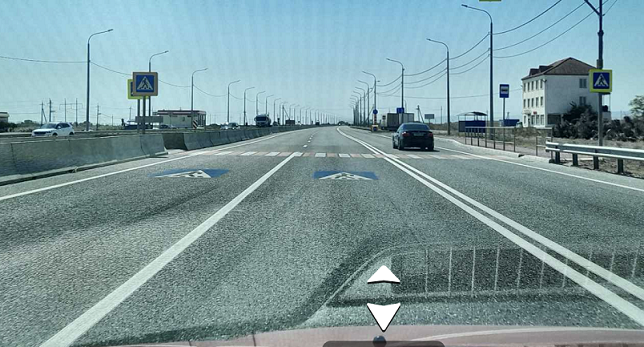 Concrete hemispheres are placed along the actual curb line, making it impossible to drive on the road. Don't draw the road.