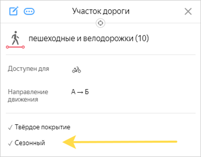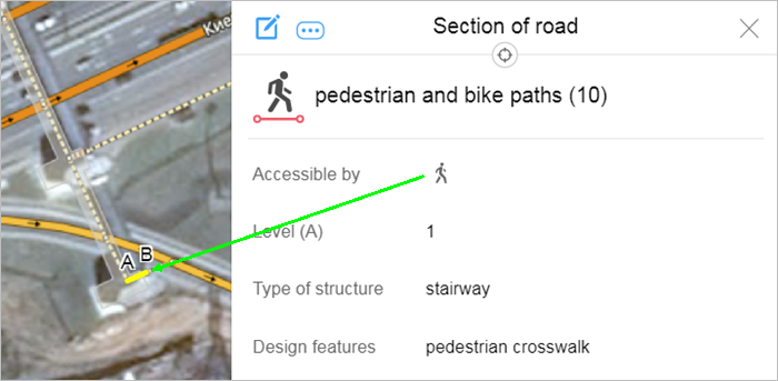 When drawing or editing the attributes of these bike paths, bike accessibility on nearby roads doesn't change and is set in accordance with the general rules for attributing similar items.