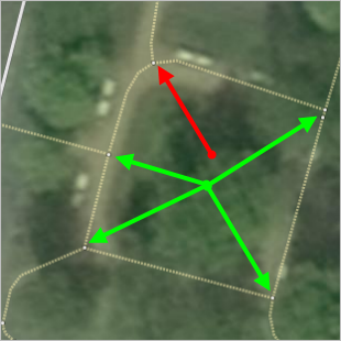 A pathway (red line) is not drawn because it would have crossed a physical barrier ( lawn):