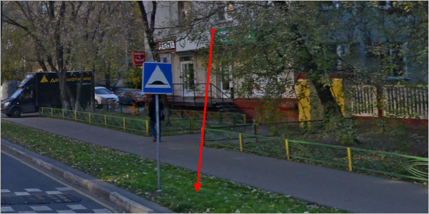 When mapping paths to apartment building entrances, you can draw them to the entrance itself, to the steps, to the porch, or to other similar items. The most correct approach is to draw them to the entrance steps. In this case, the steps themselves should stop before the entrance canopy or structure: