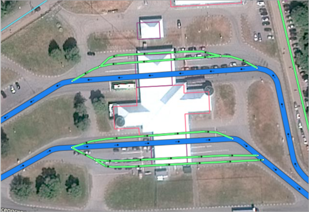 You can map roads located at different levels that provide a quick passage between the airport building and its infrastructure (such as a parking lot).