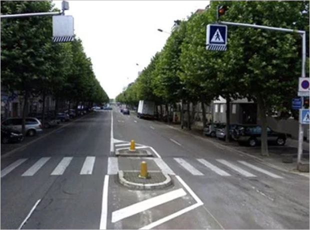 - If the crosswalk is clearly delineated at ground level (with barriers, a surface covering)