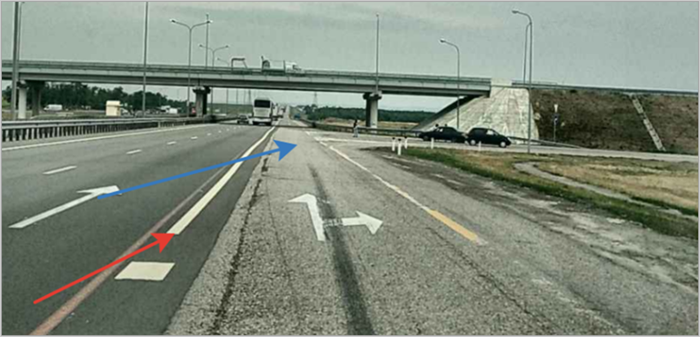 Don't draw technical connections between pedestrian roads and sidewalks on freeways (class 1 roads). For example, the sidewalk line at a stop on the MKAD (Moscow ring road) ends on the map at the spot where the sidewalk physically ends: