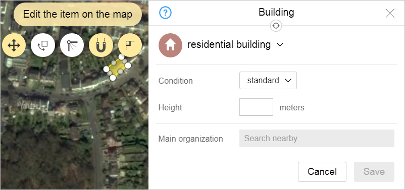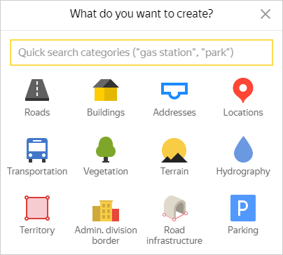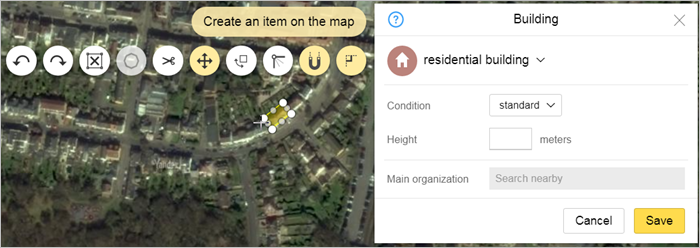 Drawing an item. There are three types of Yandex Map Editor items (as with any other type of map):