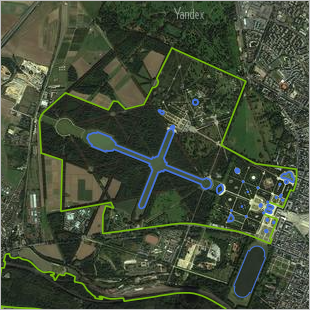 Polygonal items. These items display on the map as polygons (i.e. they encompass a particular area). Every type of map item has its own type of outline and area encompassed by it. For example, reservoirs are represented by blue polygons, vegetation (forests, parks, etc.) — by green ones: