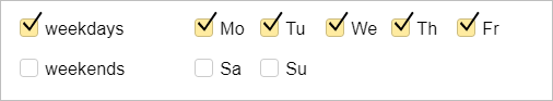 Weekdays, days of the week, and weekends — check the appropriate boxes.