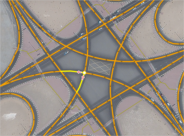 Traffic conditions must be set at intersections where additional information about road signs, traffic lights, or markings that define the specific driving rules for that intersection is needed to automatically set the route.