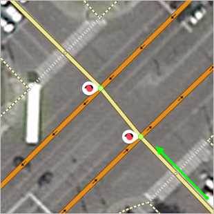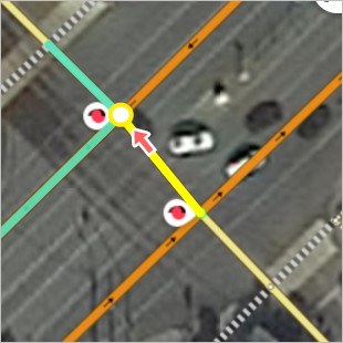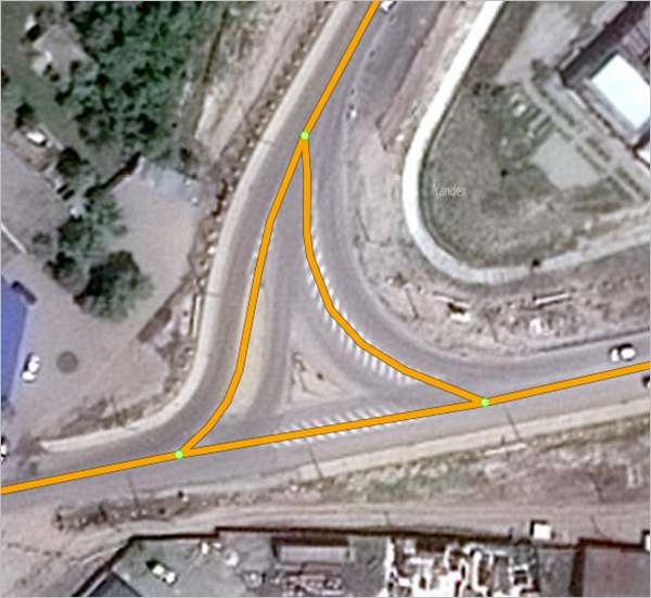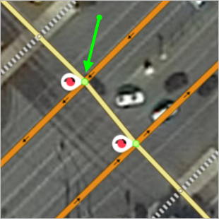 When creating a prohibited or restrictive maneuver on an intersection that includes a road with two lanes, select the point that's considered an entrance to the intersection for the given direction: