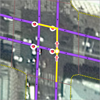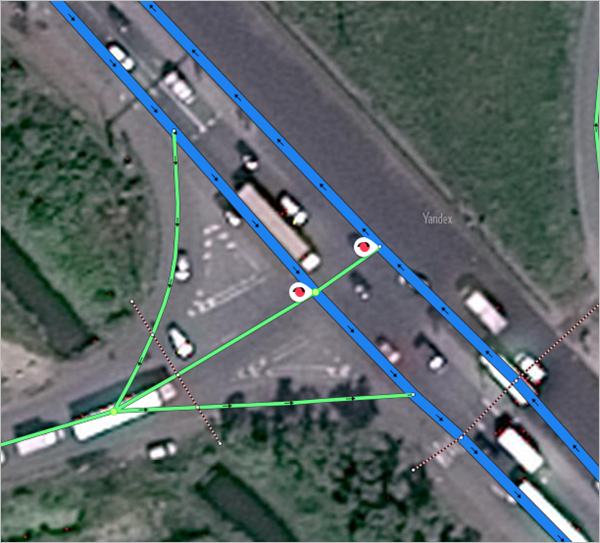 - When displaying obstacles for passage/access on the map (checkpoints, boom gates, barriers, and so on), split the sections of the road network at the location of maneuvers of the